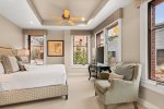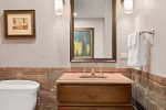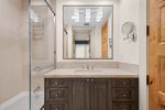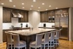 After a long day of skiing, the condo’s open concept living room offers the perfect setting to stretch out beside a roaring fire, put your feet up, and tell stories from an exciting day. Above the wood-burning fireplace, you’ll appreciate a wide-screen television, with more than enough seating for the whole group to comfortably enjoy. Moving towards the back end of the condo, you’ll find a formal dining area, and the fully equipped kitchen, which features a kitchen island that distinguishes the kitchen’s space, without disrupting the social flow. Off the main living area, you’ll find the four en-suite bedrooms. The first and second bedrooms feature a king bed and flat-screen televisions. The third bedroom has two twin beds and a television. The fourth bedroom features a queen bed and television.