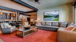 Step into a spacious and elegantly designed living area where comfort meets sophistication. The open-concept layout features a large, well-appointed kitchen and a cozy main floor living room, ideal for gathering with family and friends. The kitchen boasts high-end appliances, ample counter space, and a layout that makes meal preparation a pleasure. The living room, with its stylish furnishings and inviting ambiance, provides the perfect space to unwind after a day on the slopes. A dedicated theatre room and a rec room with billiards and a wet bar add extra entertainment options for guests.